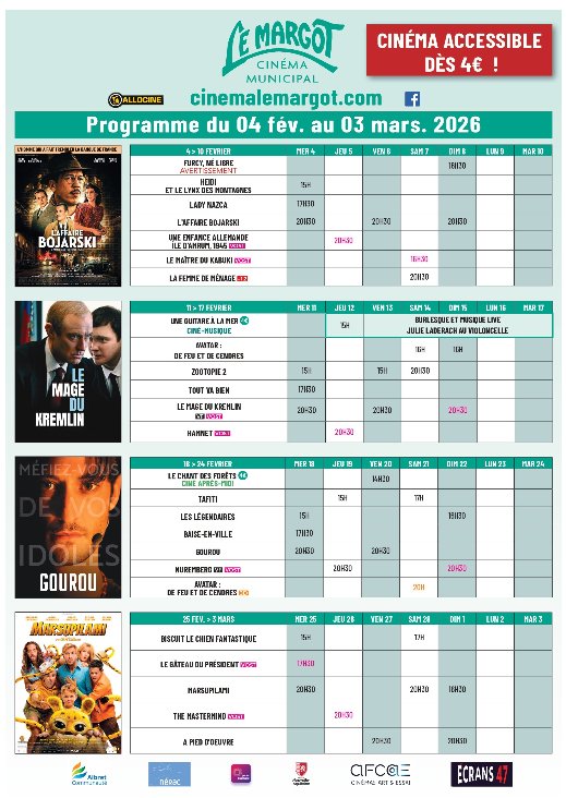 LE MARGOT : PROGRAMME DU MOIS DE FÉVRIER