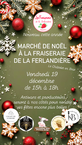 1er marché de Noël de la Fraiseraie de la Ferlandière au Châtelet-en-Brie. Pour l'occasion, des producteurs et artisans locaux ont répondu présent pour animer un marché fermier !