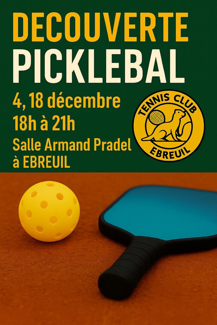 Venez découvrir le pickeball lors de nos 2 soirées "portes ouvertes" les jeudis 4 et 18 décembre à partir de 18 H