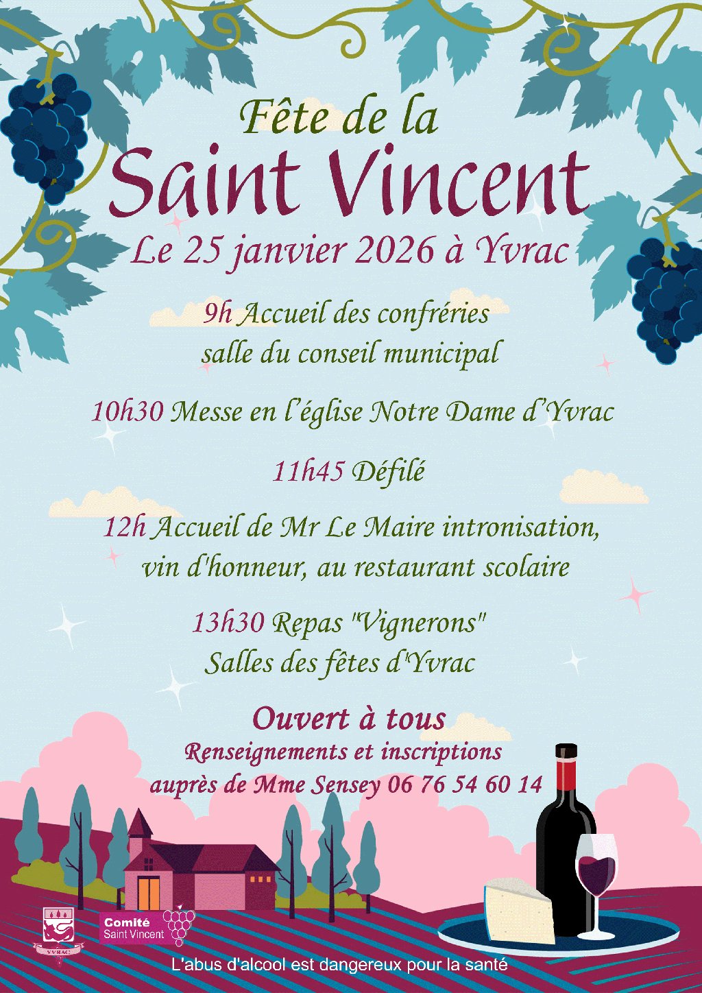 Le dimanche 25 janvier 2026, rejoignez-nous pour célébrer la Saint-Vincent, la fête traditionnelle des vignerons ! Un moment de partage et de convivialité ouvert à toutes et à tous.
