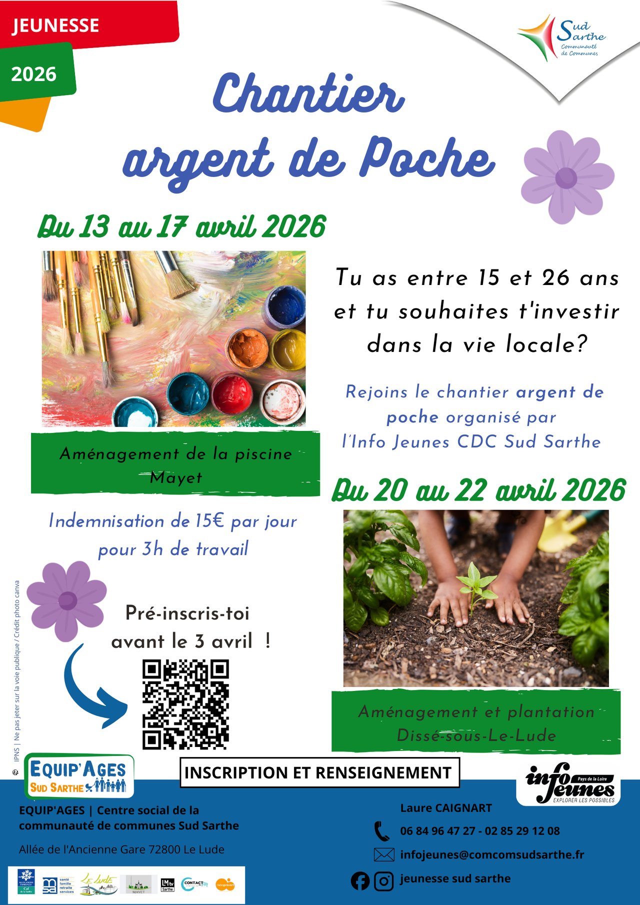 👉 Rejoins le chantier argent de poche organisé par Info Jeunes Sud Sarthe !