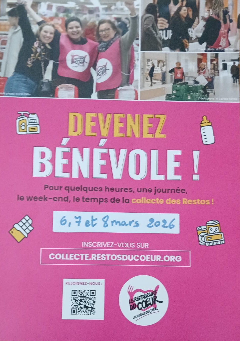 collecte.restosducoeur.org, ou en scannant le QR code présent sur l’affiche.